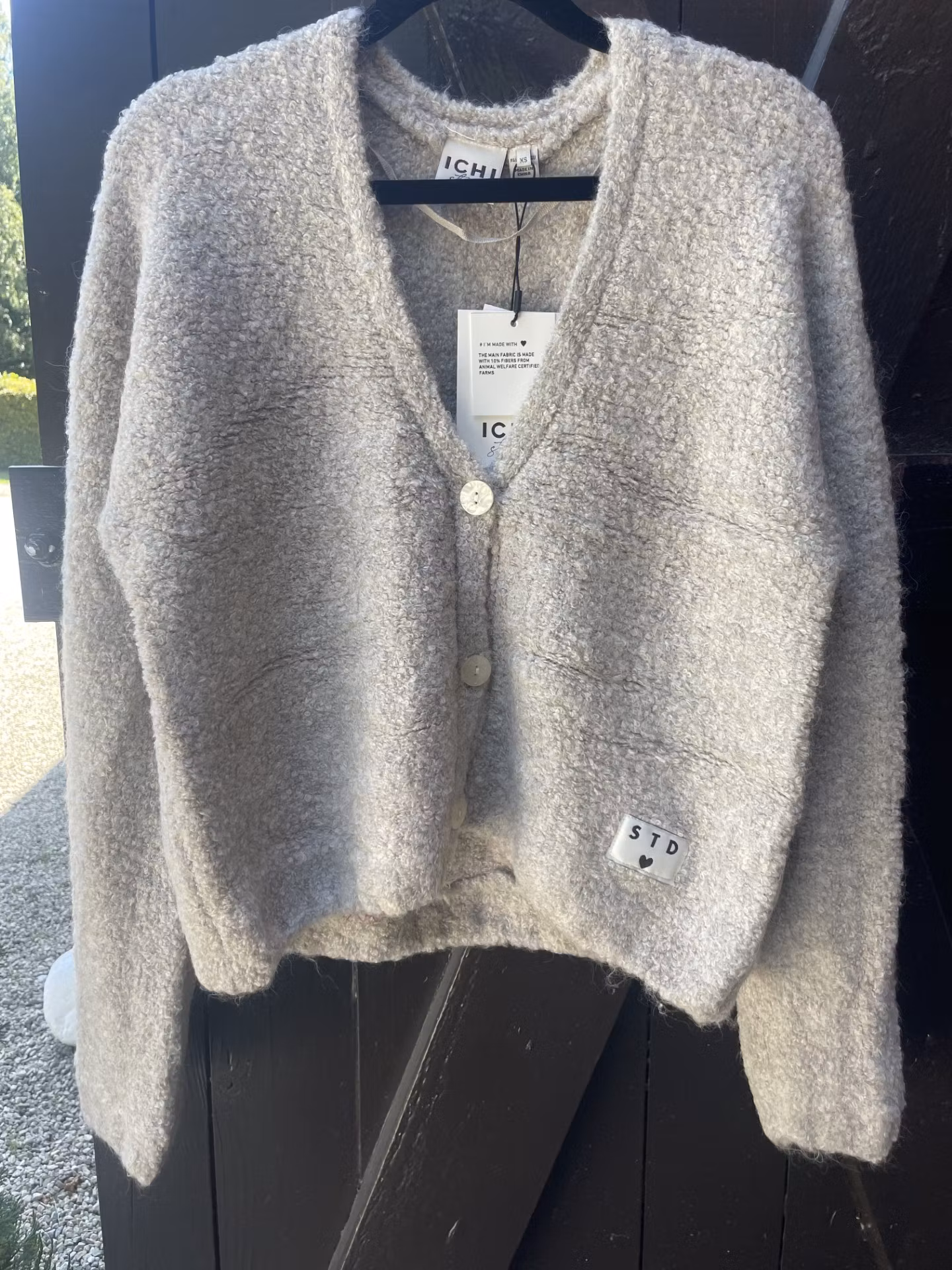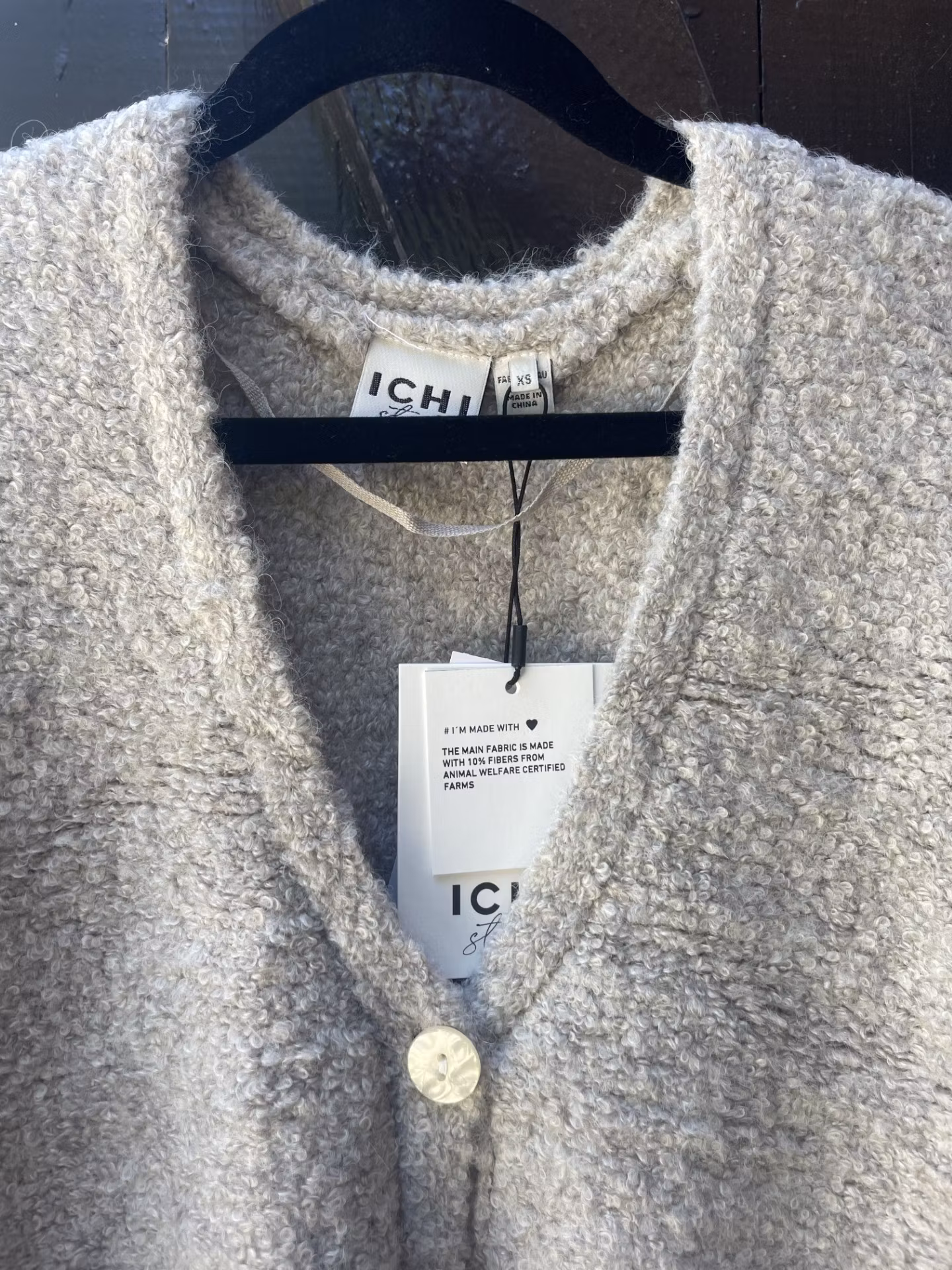 I lager. ICHI kofta "BLARISA" , Almond milk 799 kr storlek XS S M L XL XXL Lägg i varukorgen Supermjuk o användbar kofta i snygg kall beige färg. Färg : Almond Milk Material : 63 % Akryl , 28 % Nylon , 10 % Ull , 1% Elastan Tvättråd : 30°