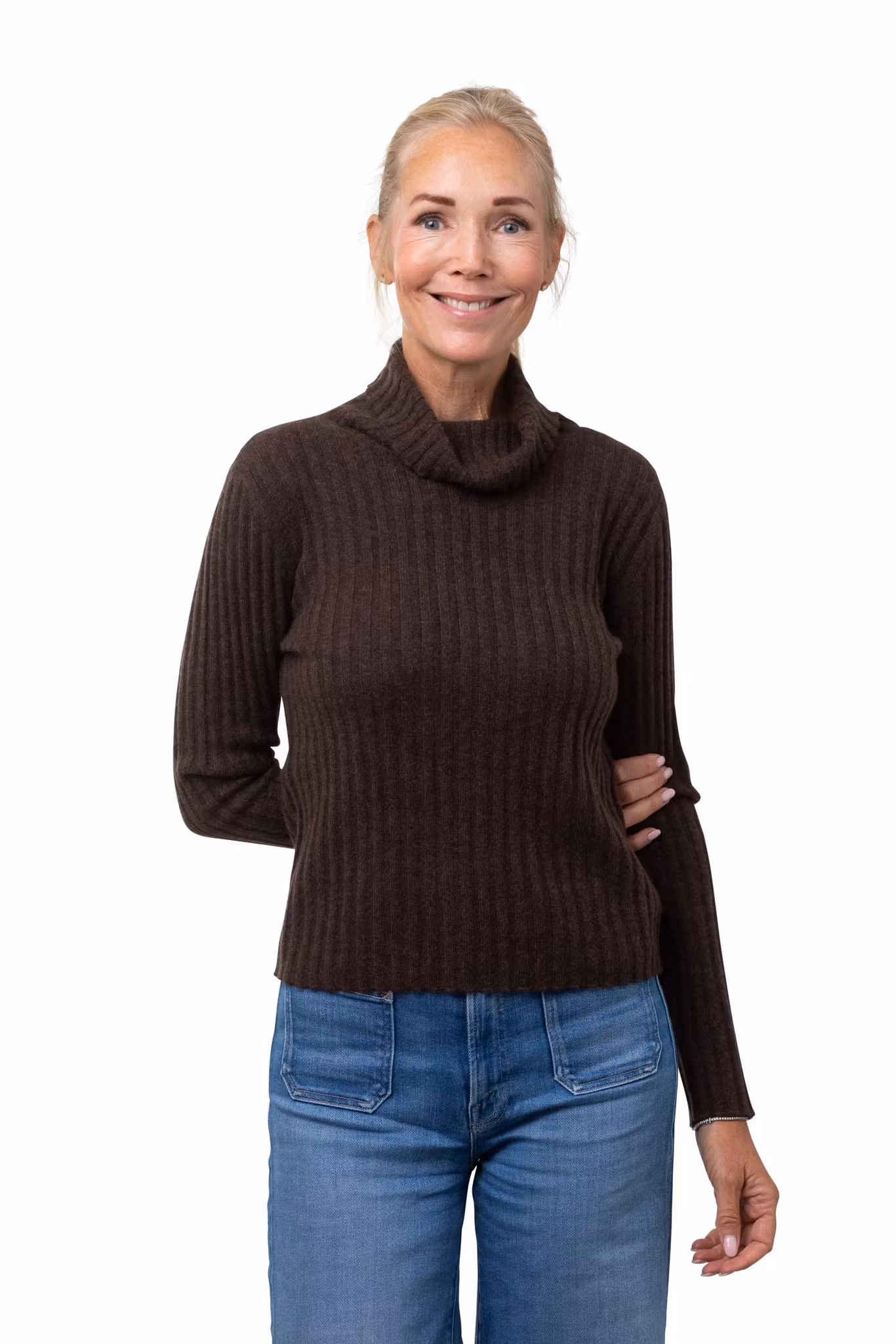 Tröja Ella polo är en långärmad tröja med kvinnlig passform. En elegant polokrage och ett subtilt ribbat mönster, vilket gör den till ett stilrent val. Perfekt att bära under en kavaj eller kofta, eller kombinera med jeans eller kjol för en avslappnad men sofistikerad look. Dessutom medföljer en kashmirkam utan extra kostnad för att vårda din tröja.
