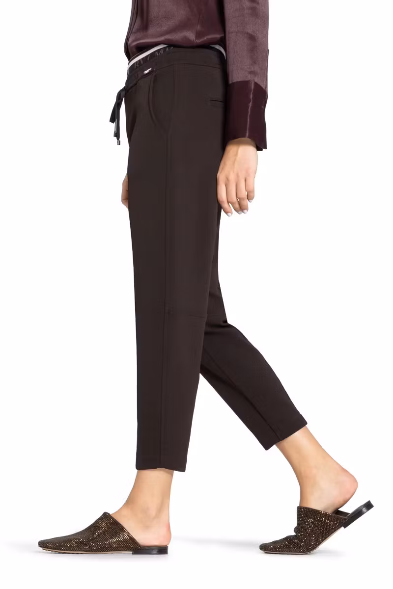 Vårens populära byxa från cambio " Eden" , har nu kommit i höstens hetaste färg - Espresso brun ! Dubbel linning, gummiband i midjan samt snöre . Två fickor fram och dolda fickor bak. Fina sömmar på benen och avsmalnande i benen. Fotvidd nertill : 33 cm i stl 38