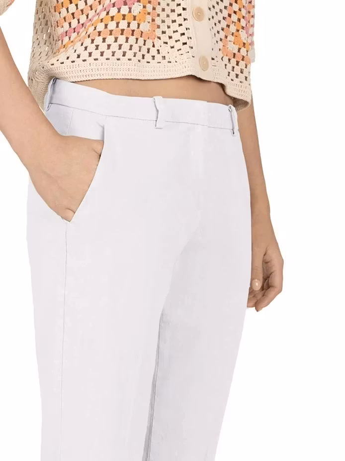 I lager. Cambio " Krystal Linen " , Pure white 1 999 kr storlek 34 36 38 40 42 44 46 Lägg i varukorgen Linne "finbyxa" i chinos modell och 7/8 dels längd, pressveck och uppvik nertill. Fickor vid sidorna och dolda fickor bak. Färg : Pure whiteMaterial : 65 % Linne, 34 % Bomull , 1 % Elasthan Tvättråd : handtvätt
