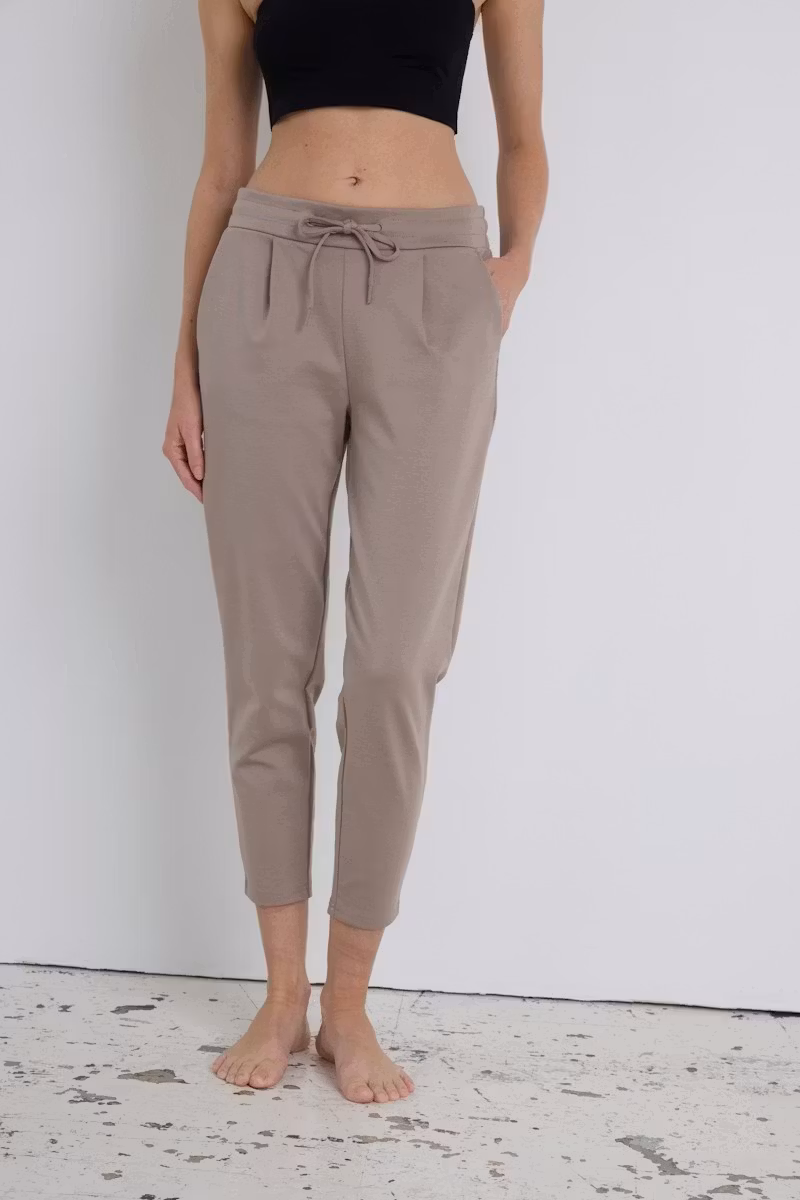 I lager. ICHI byxa " Kate PA " , Fungi 499 kr storlek XS S M L XL XXL XXXL Lägg i varukorgen Dambyxa med avsmalnande passform, elastisk midja med dragsko och dekorativ frontveck. Bekväm design som passar både vardag och mer formella tillfällen.Färg : Fungi Material : 74% Polyester, 22% Viskos, 4% ElastanTvättråd: 30°