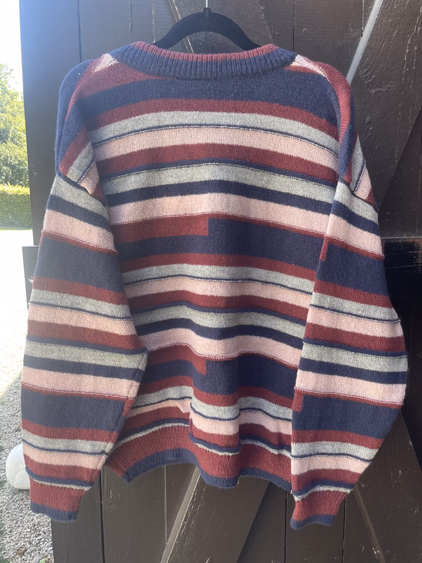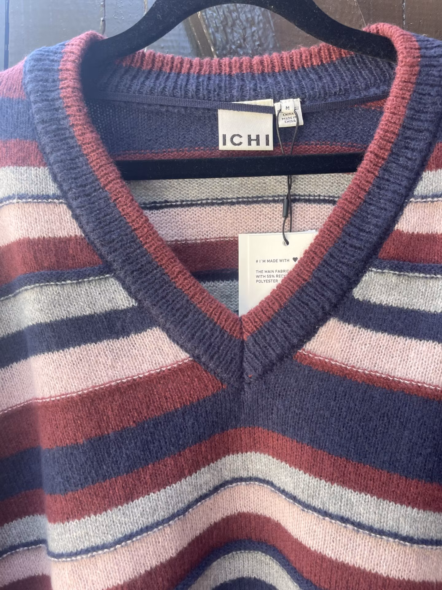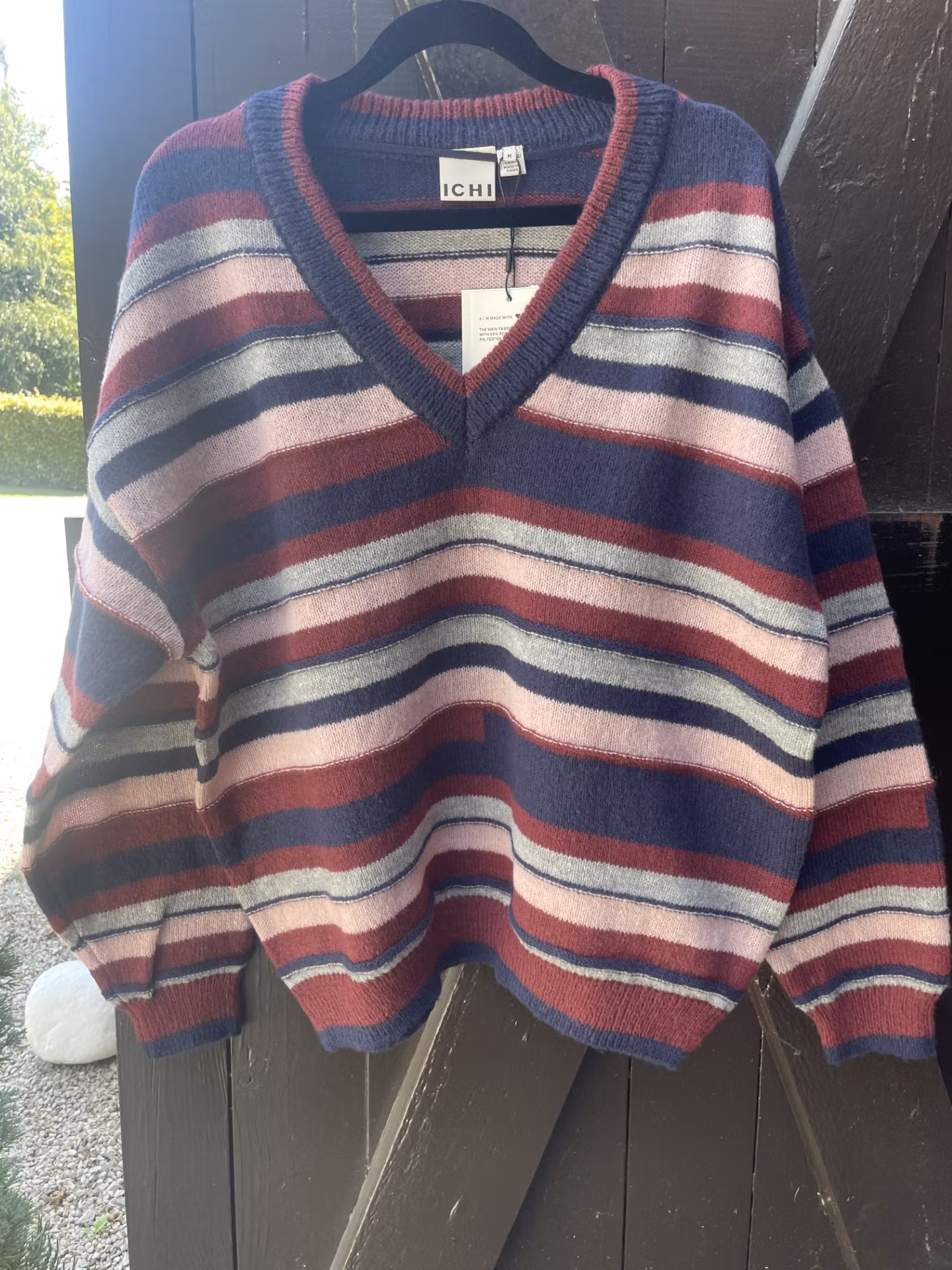 I lager. ICHI tröja " ASTRA" , randig 599 kr storlek M L XL Lägg i varukorgen V-ringad basic , randig tröja i höstens alla trend färger ! Passar fint till alla denim lovers ..Färg : Marinblå , bordeaux , ljusrosa och gråMaterial : 100 % polyesterTvättråd : 30°