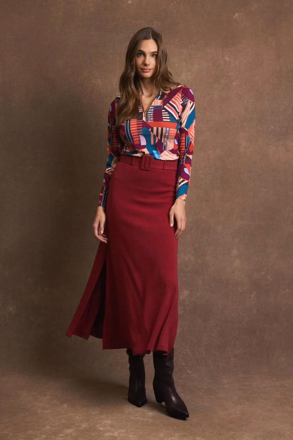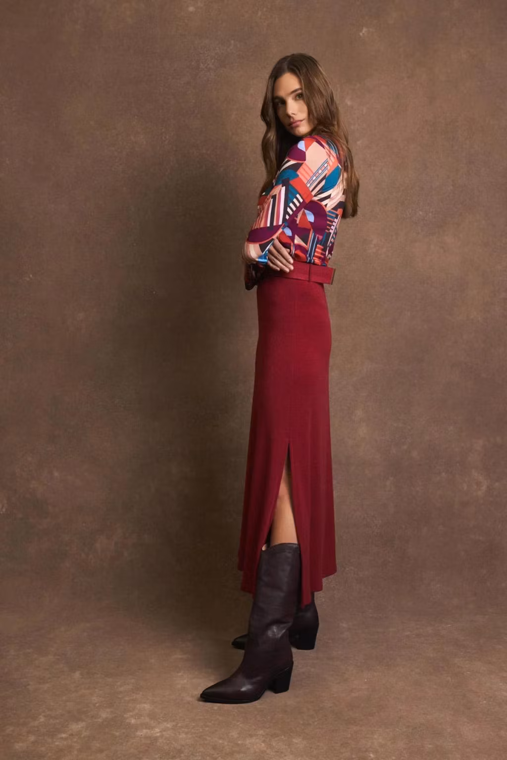 I lager. TINTA Långkjol , Djupröd 950 kr storlek XS S M L XL XXL Lägg i varukorgen Långkjol med gummiband i midjan och skärp. Hög slits i sidorna. Färg : Djupröd Material : 88 % Polyester , 8 % Viscose , 4 % Elastan Tvättråd : 30°