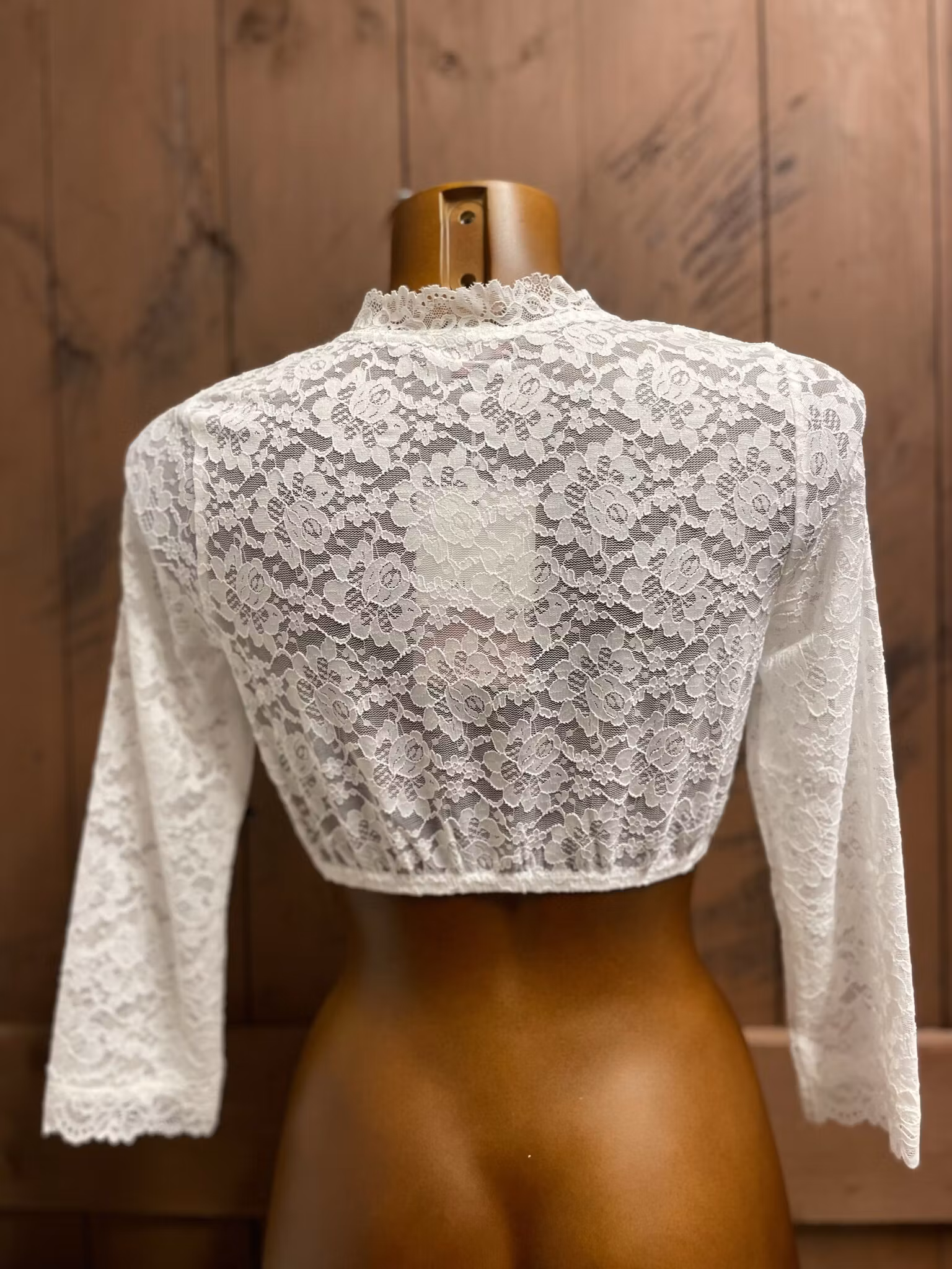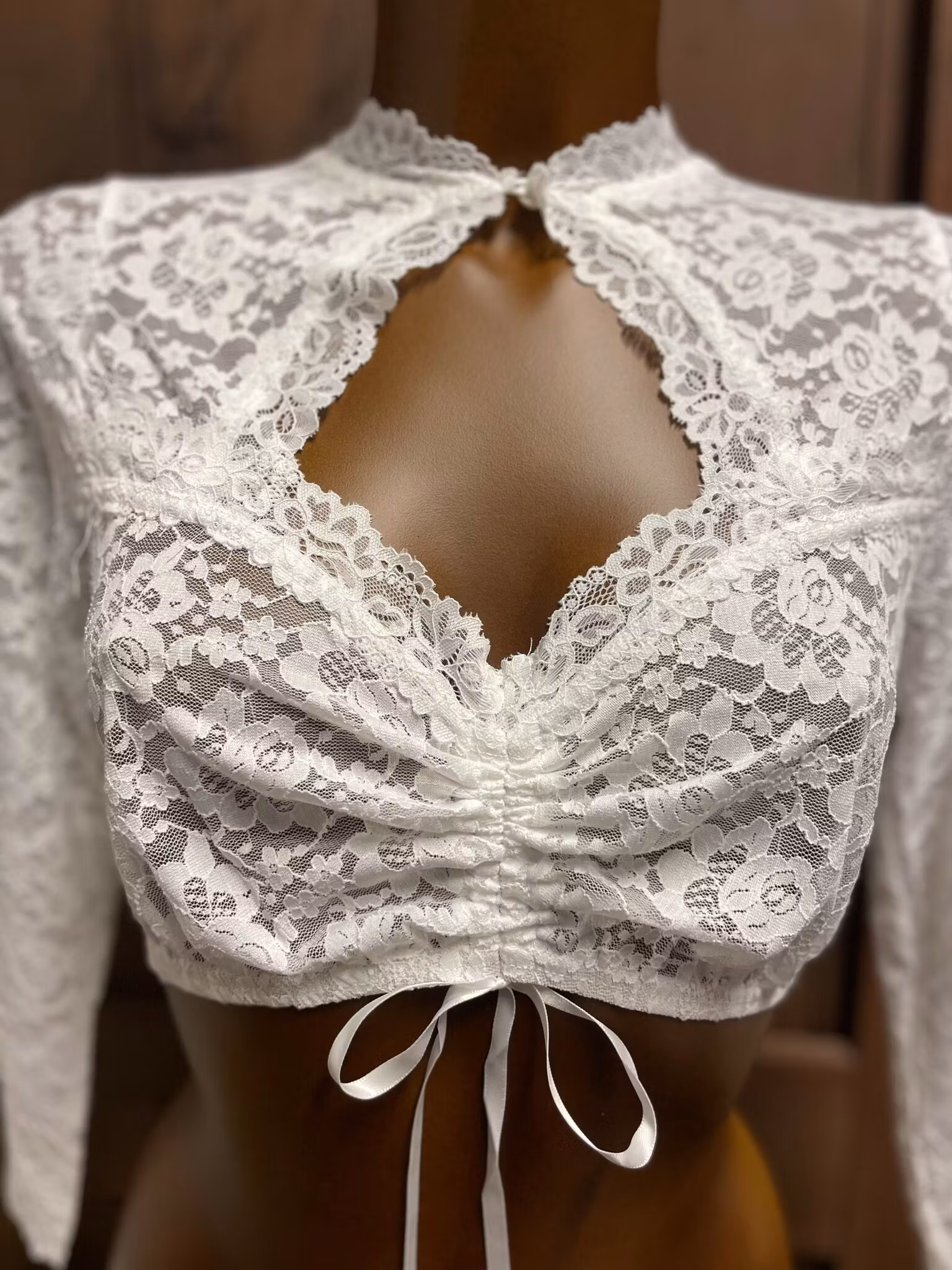I lager. Krüger " Amore Italiano " Dirndl blus , ecru 650 kr storlek 36 38 40 42 44 46 48 Lägg i varukorgen Dekorativ spetsblus med annorlunda och fint dekolletage. 3/4 ärm med fint avslut i spetsen. Färg : Ecru Material : 92 % Polyamid , 8 % Elastan Tvättråd : 30°