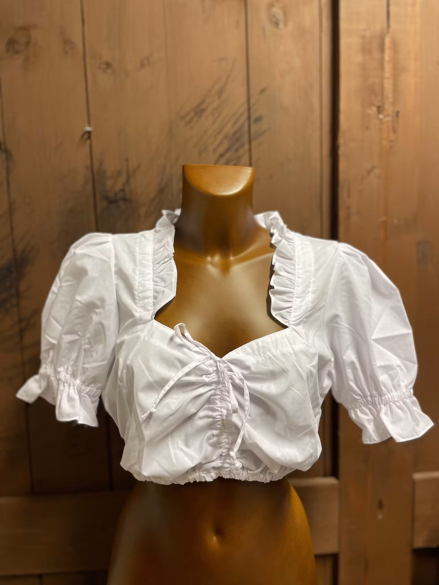 I lager. OS Trachten Dirndl blus kort ärm, vit 499 kr storlek 40 42 44 46 48 50 Lägg i varukorgen Fin , klassisk dirndlblus med kort ärm och drapering fram med snöre på dekolletaget. Fin volang längs nacken. Färg : vit Material : 55 % Bomull , 45 % Polyester Tvättråd : 60°