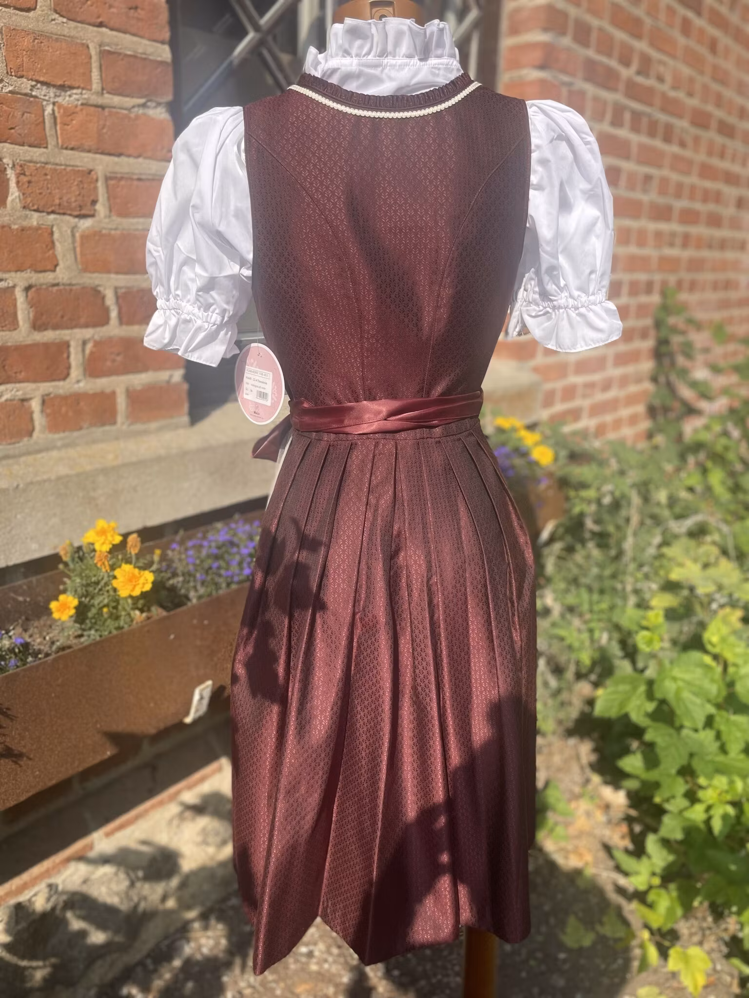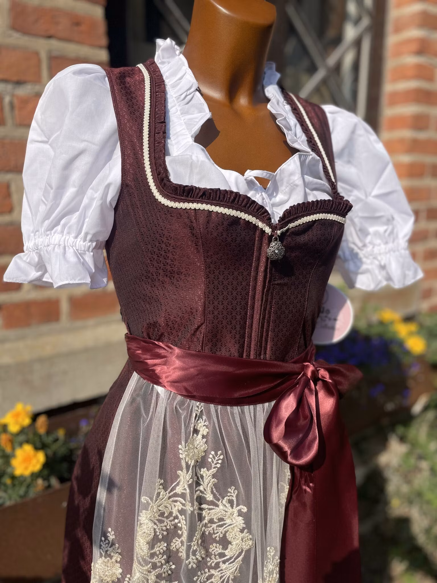 Färg : Mahagoni ( vinröd ) och cremefärgade band och spets förkläde.